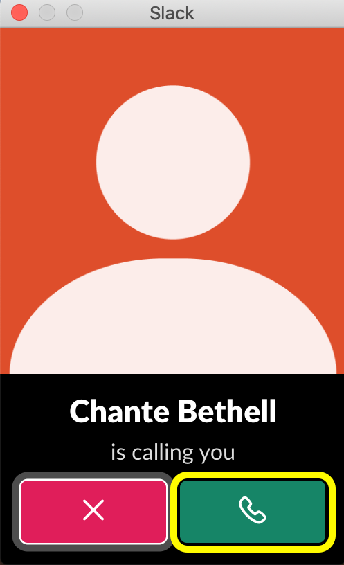 If you need help during consultation session, a course instructor may initiate a Slack call. To answer a Slack call, hit the button with the phone icon on the prompt.